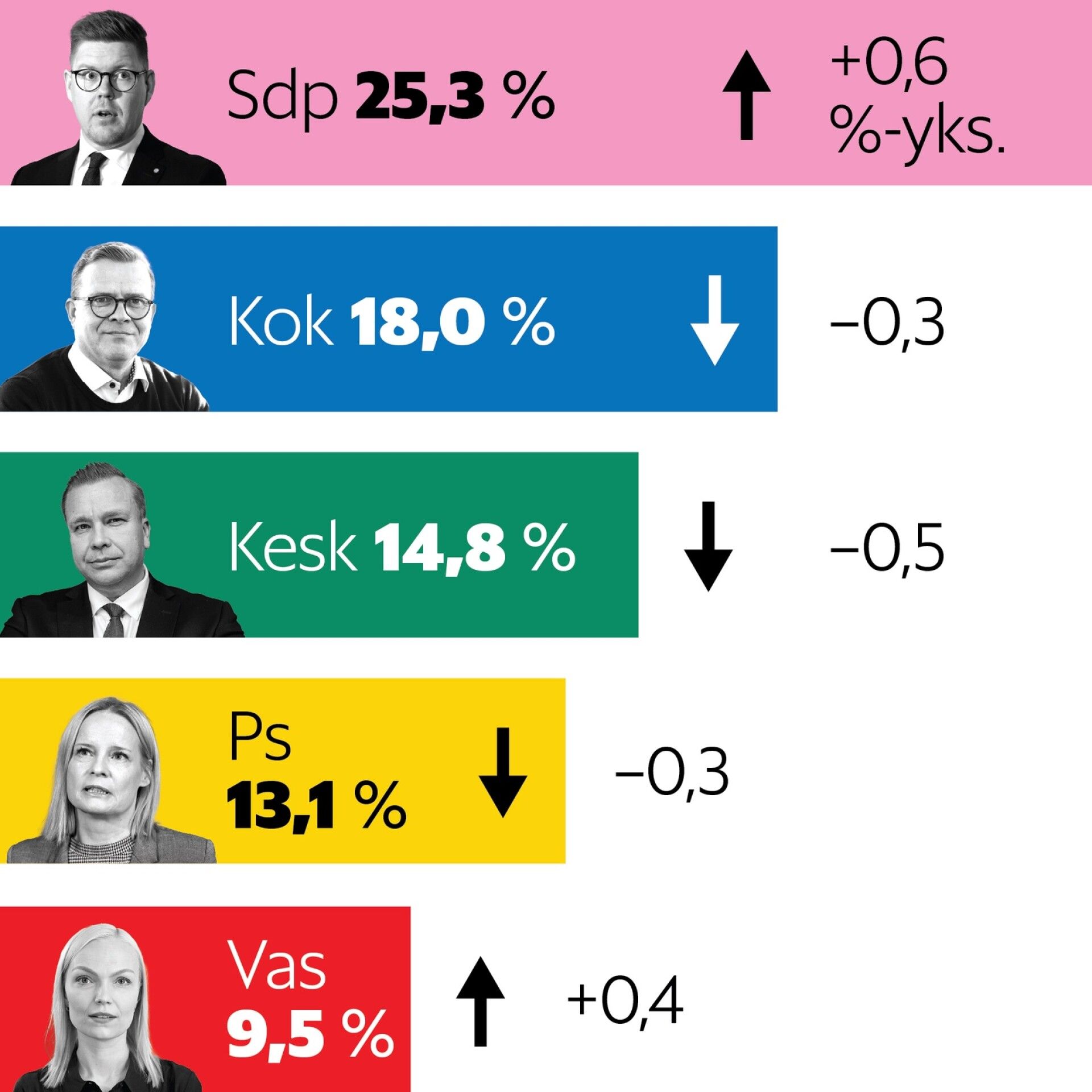HS-gallup: SDP:n asema kärjessä yhä vahvempi – ainoa puolue, jonka kannatus on yli 20 prosentissa